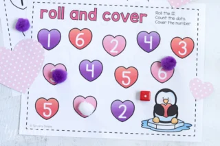 Valentine’s Day Math Printable: Roll and Cover Hearts